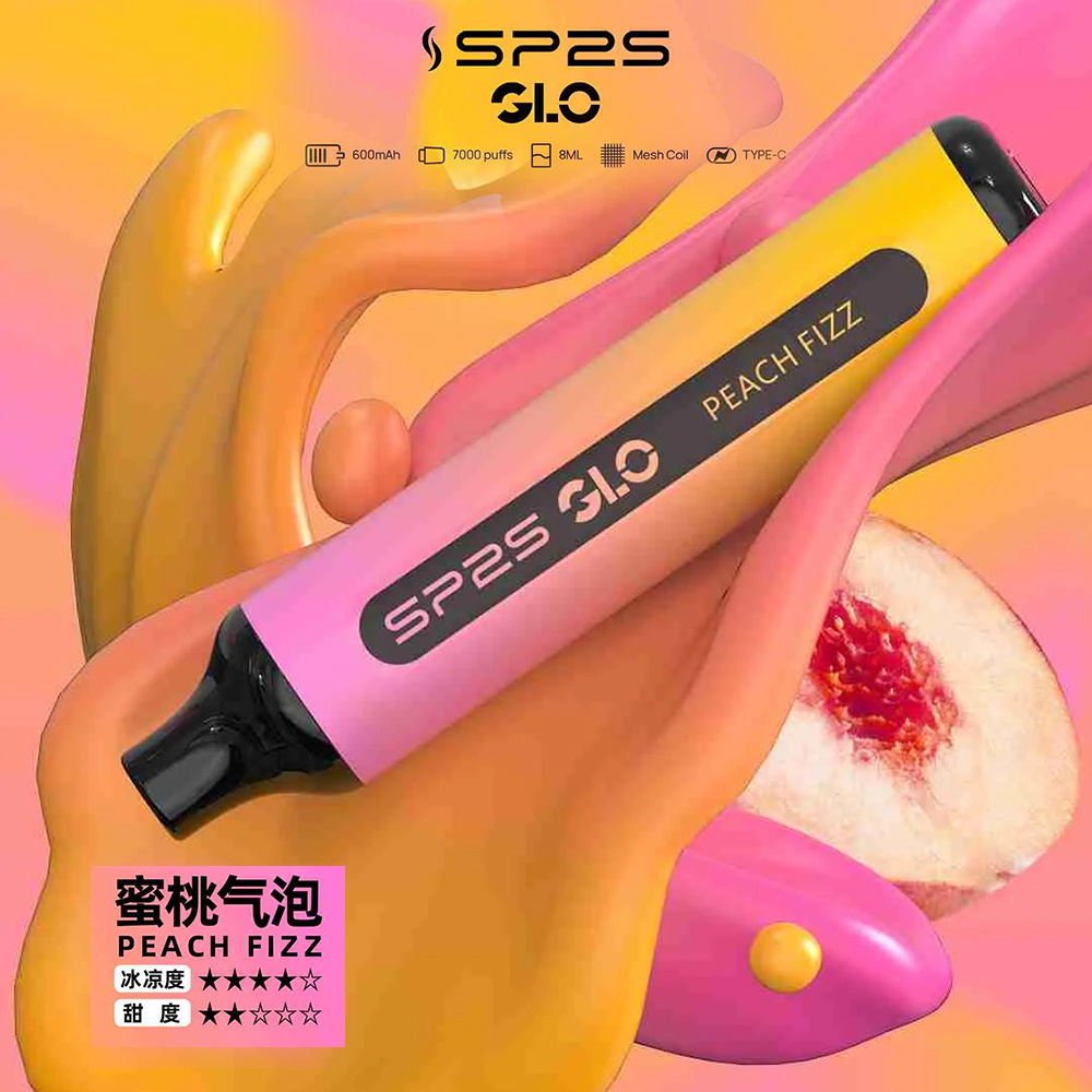 延續SP2S GLO系列的大容量優勢,但在細節上優化煙油儲存技術,確保7000口全程口感穩定,從第一口到最後一口,蜜桃氣泡的口味始終一致,不會出現後期口味變淡、霧量變少的問題,徹底解決普通一次性電子煙「口數少、更換頻繁」的痛點,省心又實用。